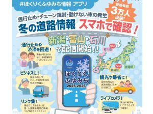 【石川県商工会連合会】 【金沢河川国道事務所からのお知らせ】ほくりくふゆみち情報アプリ 石川・富山・新潟で配信開始!